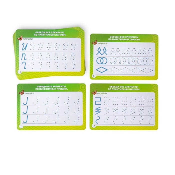 Развивающий набор пиши-стирай «Учимся писать элементы букв и цифр», 20 карт