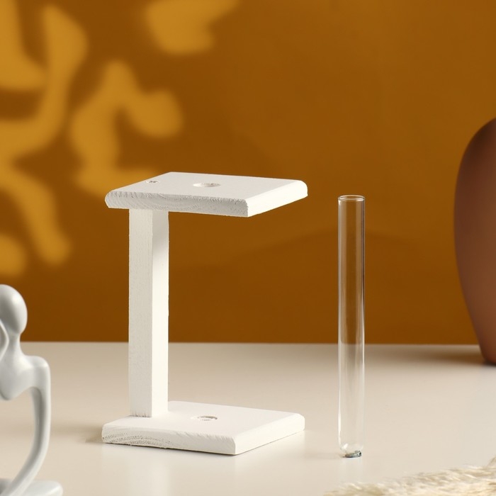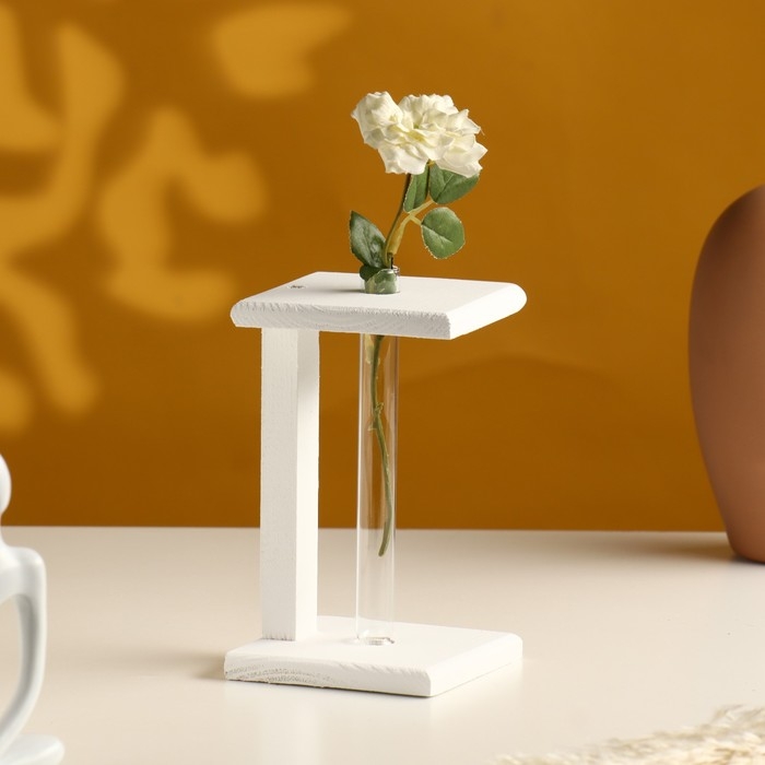 Кашпо деревянное 9×9×16 см с 1 колбой "Квадрат", белый Дарим Красиво