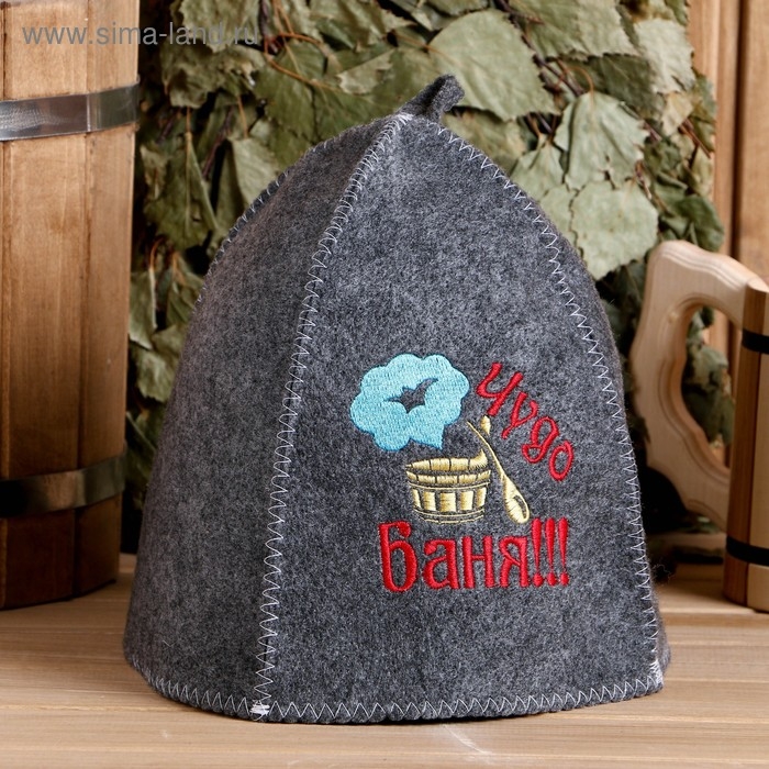 Шапка для бани с вышивкой "Чудо баня", серая