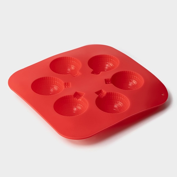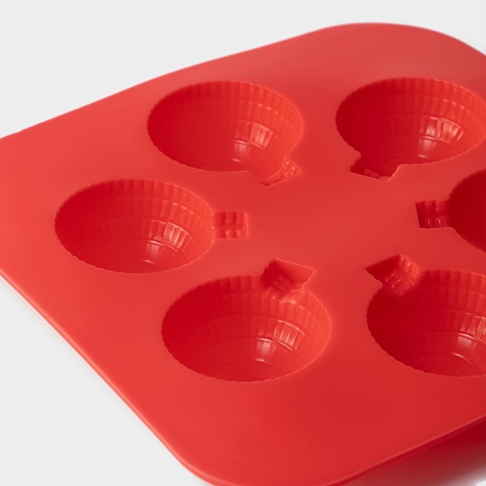 Форма для шоколада новогодняя Доляна «Шар», силикон, 15×15×2 см, 6 ячеек, цвет красный