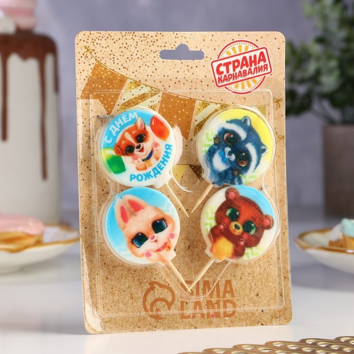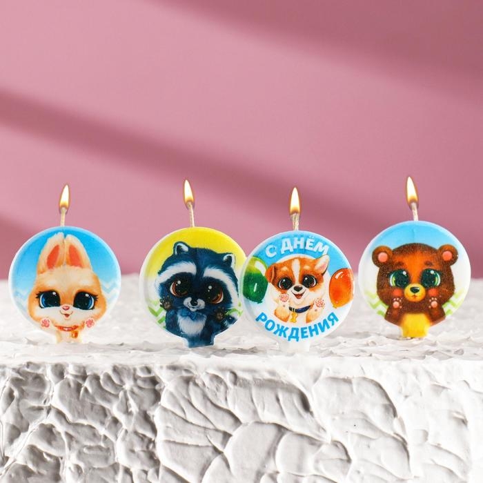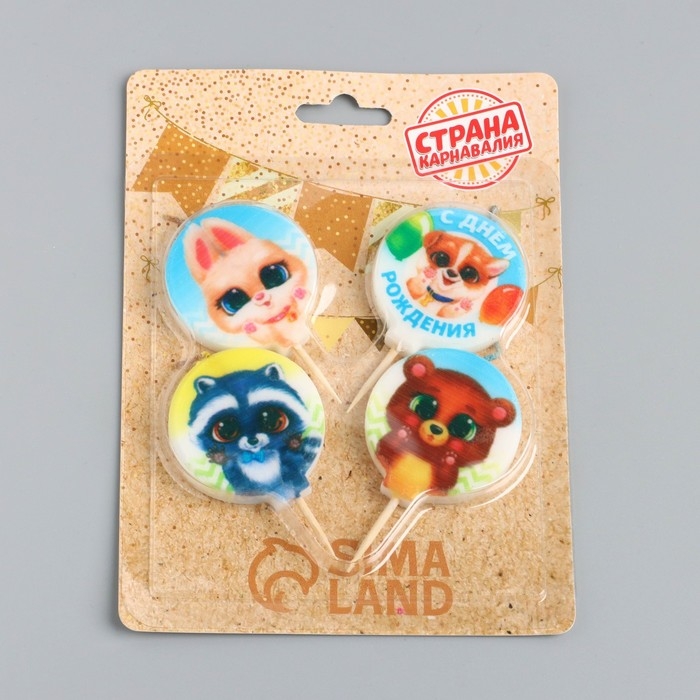 Набор свечей в торт "Зверята", 4×4,4см, 4 шт
