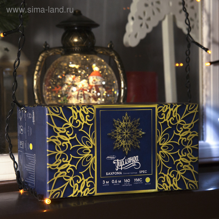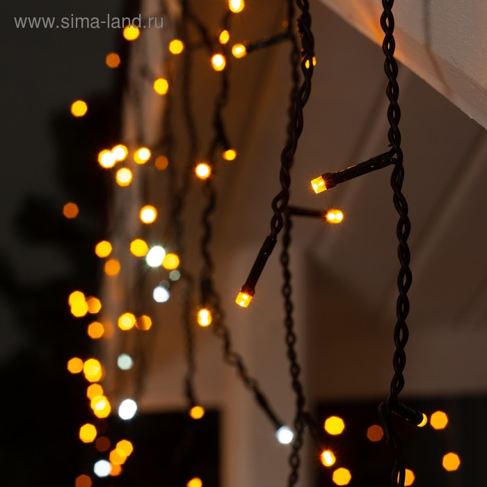 Гирлянда «Бахрома» 3 × 0.6 м, IP44, УМС, тёмная нить, 160 LED, свечение жёлтое, мерцание белым, 220 В