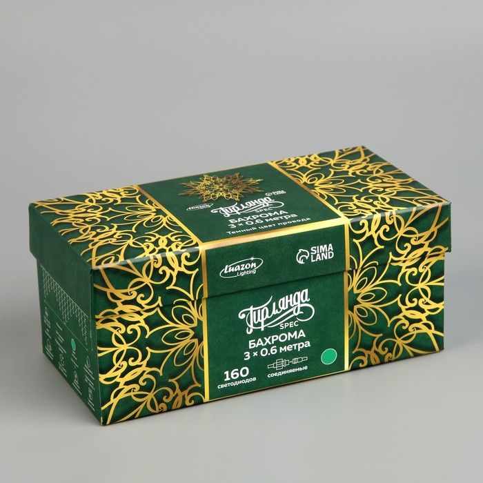 Гирлянда «Бахрома» 3 × 0.6 м, IP44, УМС, тёмная нить, 160 LED, свечение зелёное, мерцание белым, 220 В