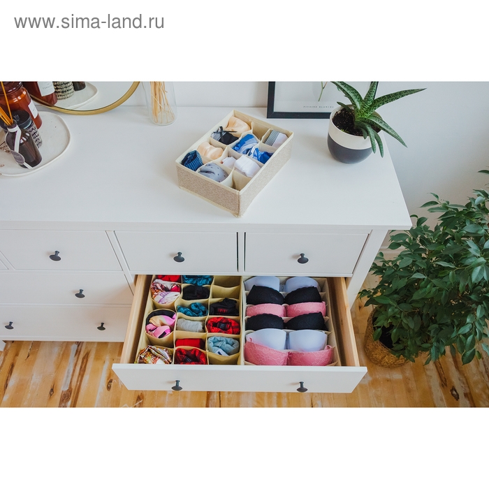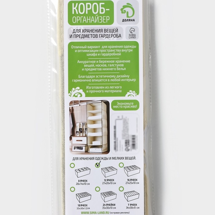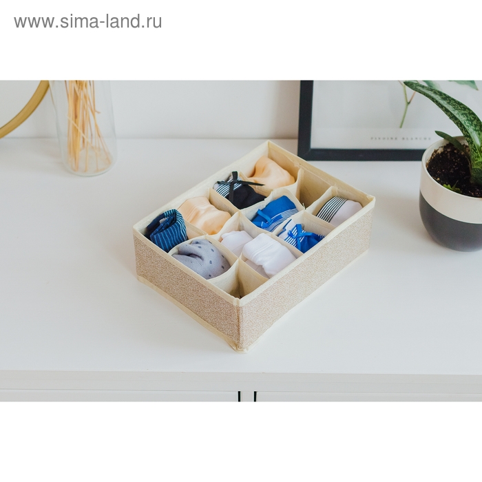 Органайзер для хранения белья Доляна «Европа», 12 ячеек, 27×20×10 см, цвет бежевый