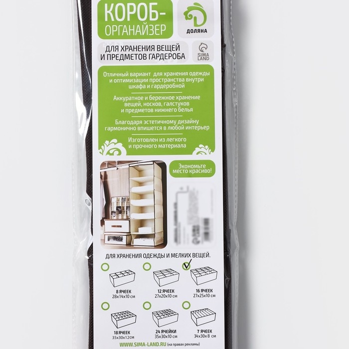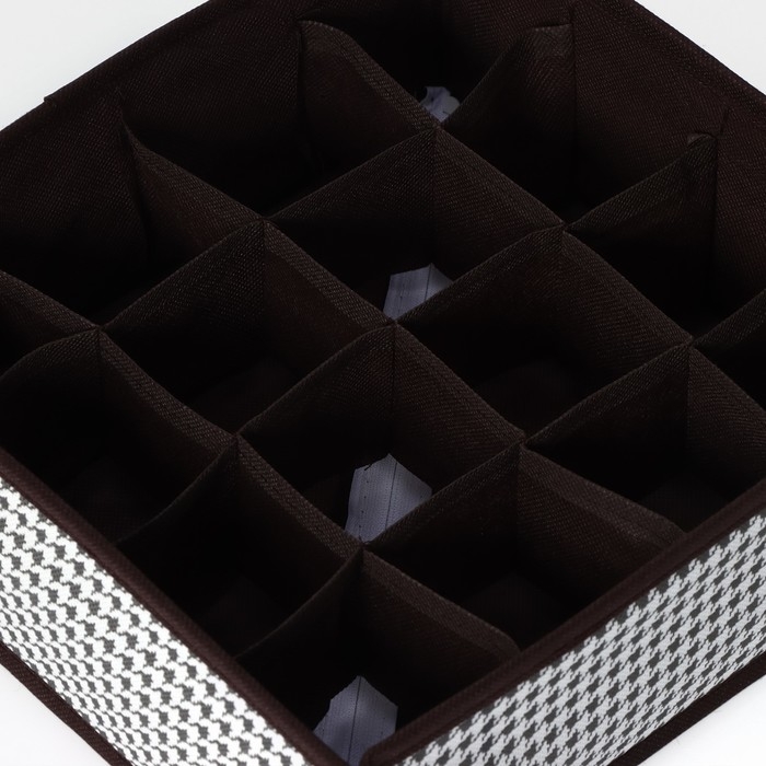 Органайзер для хранения белья Доляна «Вилли», 16 ячеек, 27×25×10 см, цвет бело-коричневый