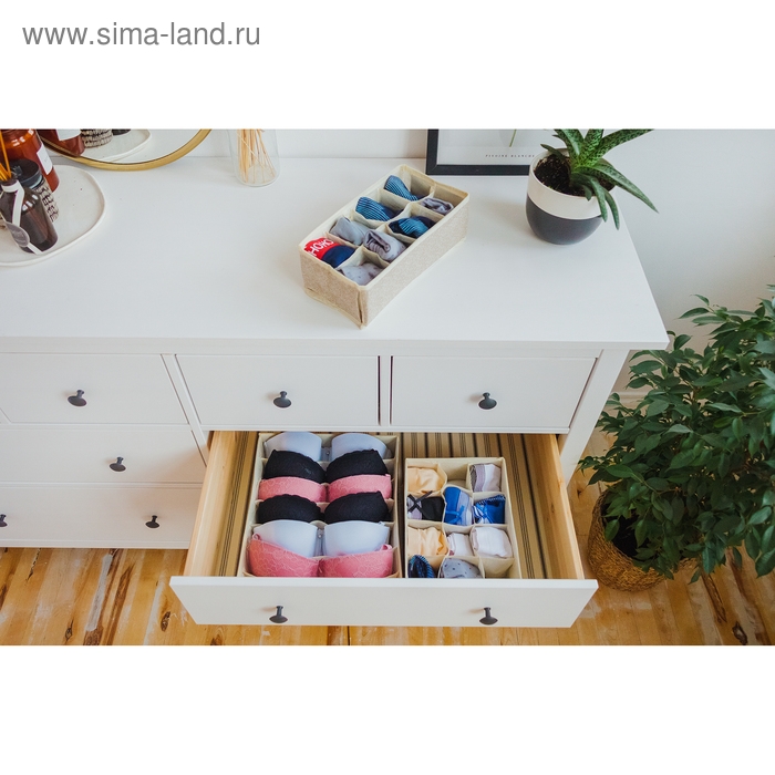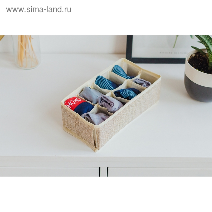 Органайзер для хранения белья Доляна «Европа», 8 ячеек, 28×14×10 см, цвет бежевый