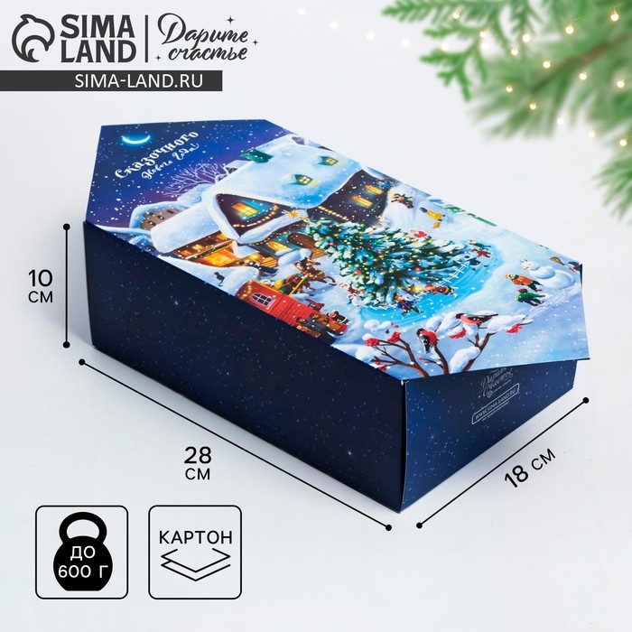 Коробка - конфета подарочная новогодняя складная «Новогодняя деревушка», 18 х 28 х 10 см, Новый год