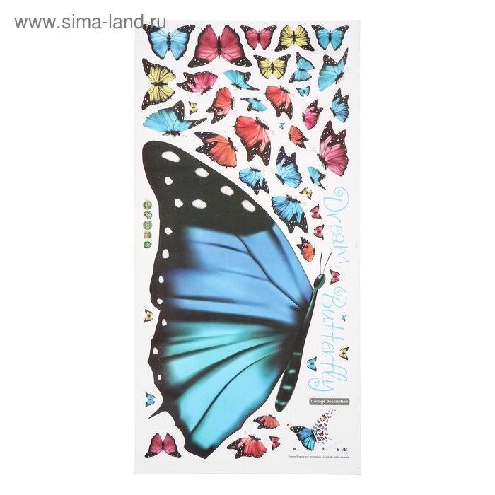 Наклейка пластик интерьерная "Полёт бабочек" 30х60 см