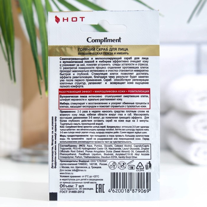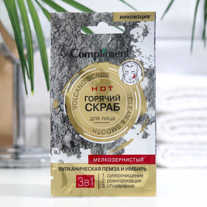 Скраб для лица 3 в 1 Compliment «Вулканическая пемза и имбирь», горячий, саше, 7 мл