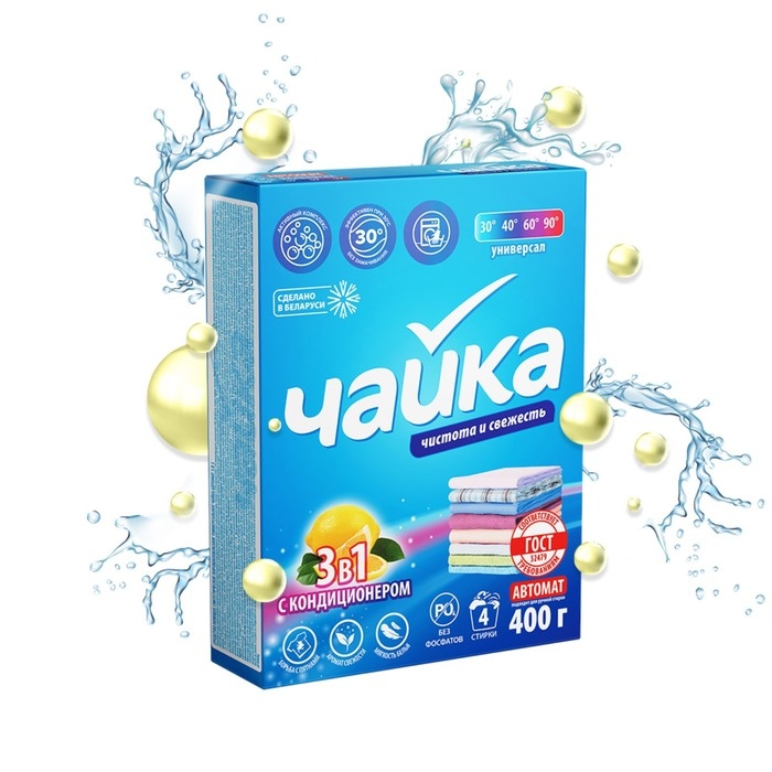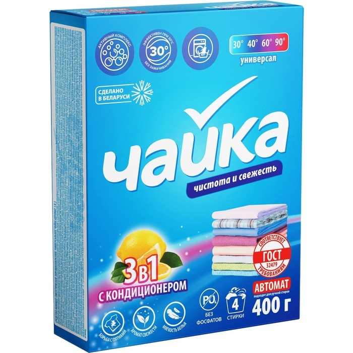 Порошок для стирки Чайка 3 в 1 «Лимон», автомат, 400 г