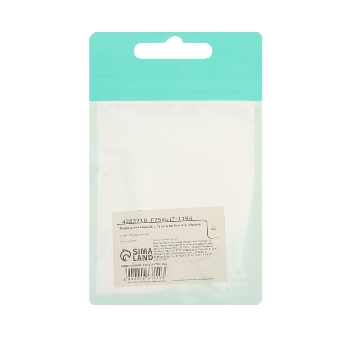 Переходник Luazon, с Type-C на Jack 3.5, чёрный