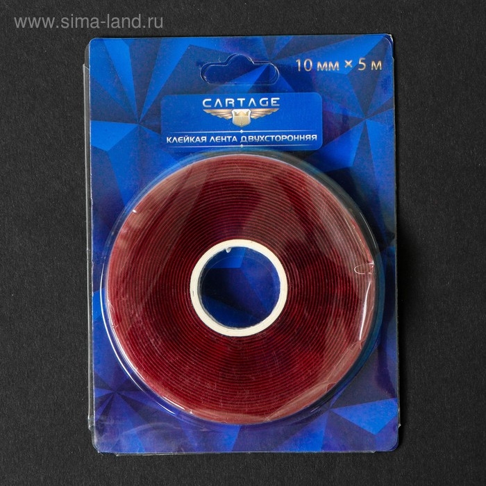 Клейкая лента Cartage, прозрачная, двусторонняя, акриловая, 10 мм × 5 м
