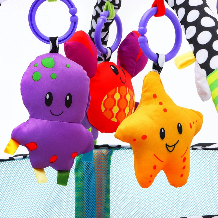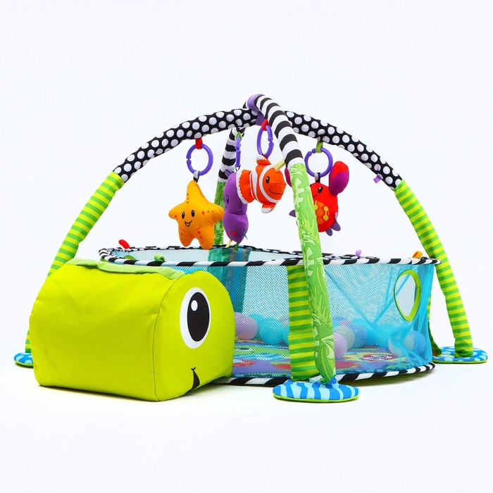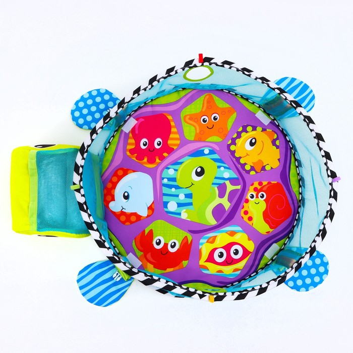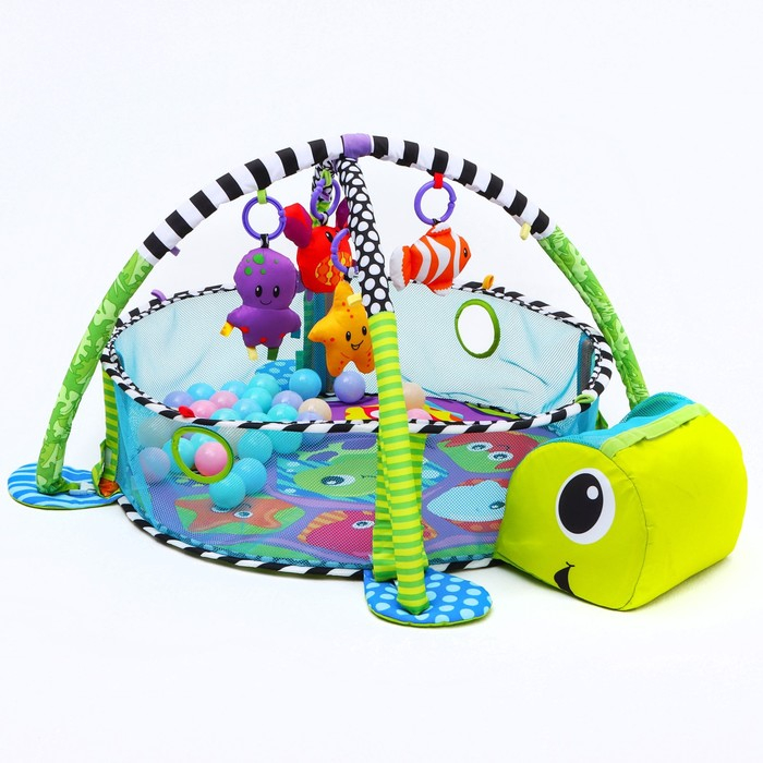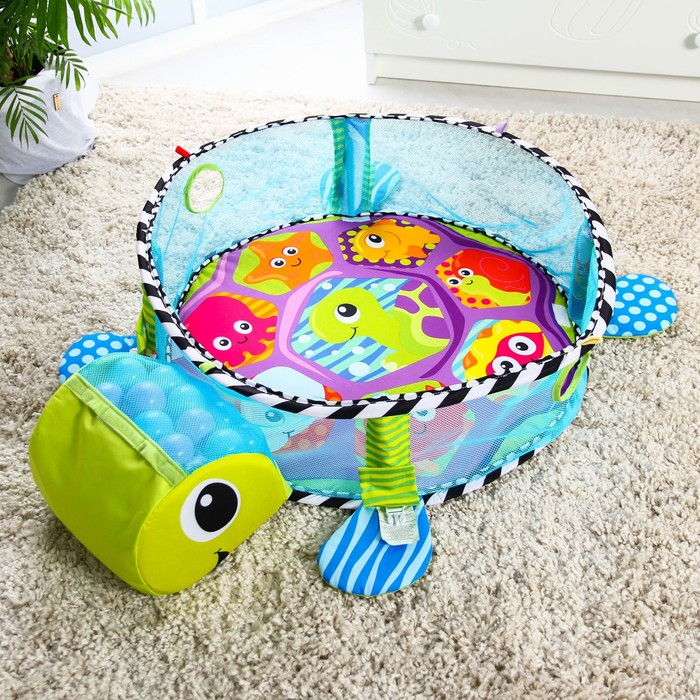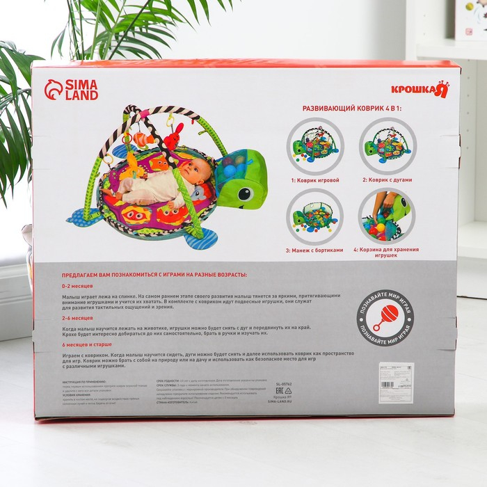 Развивающий коврик 3 в 1 «Черепаха», 68x68 см, 30 цветных шариков, 4 игрушки, Крошка Я