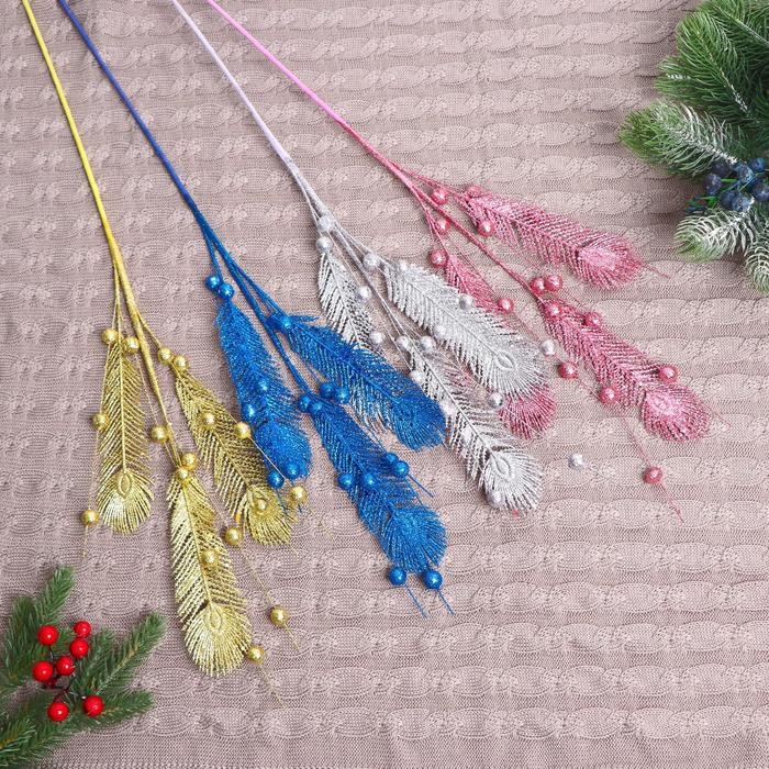 Декор "Блеск" веточка перышко, d-1 см 70 см, микс