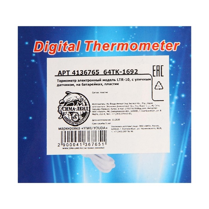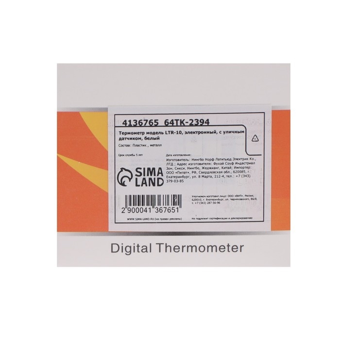 Термометр электронный LTR-10, с уличным датчиком, белый