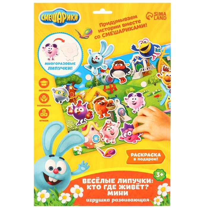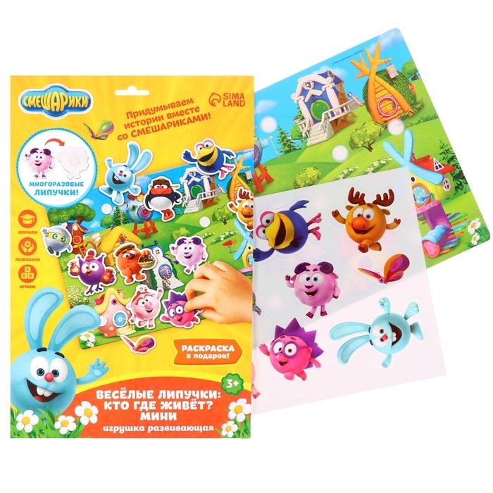 Игра развивающая на липучках "Изучаем кто где живет", Смешарики - это та игрушка, в которую можно играть не только дома, но и брать с собой на прогулку или в детский сад!