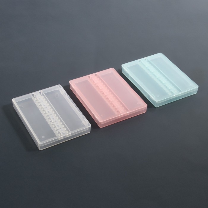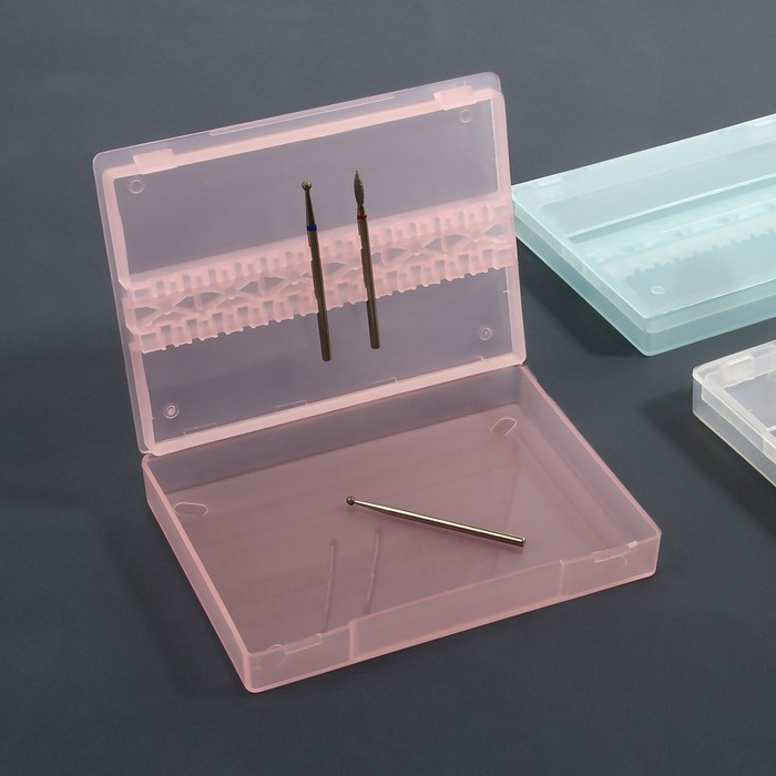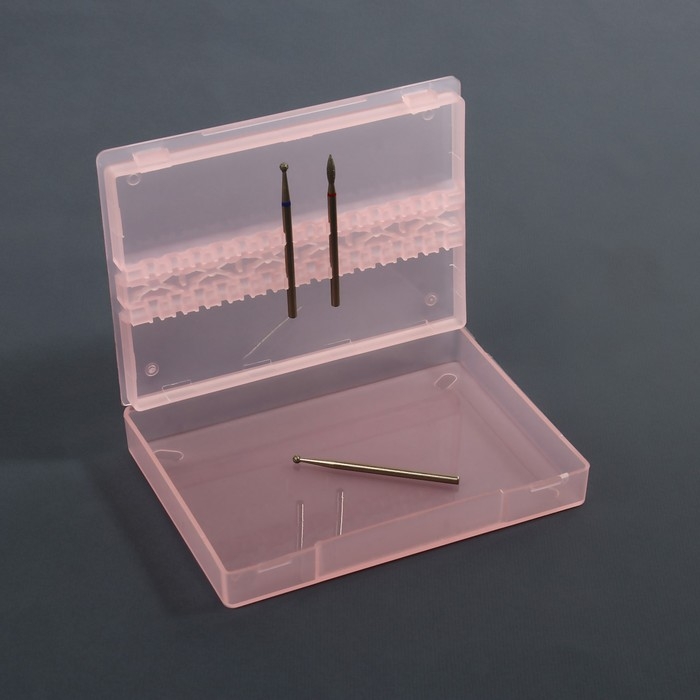 Подставка под фрезы, прямоугольная, 10 отделений, 8 × 3,6 см, с крышкой, в картонной коробке, цвет розовый/прозрачный