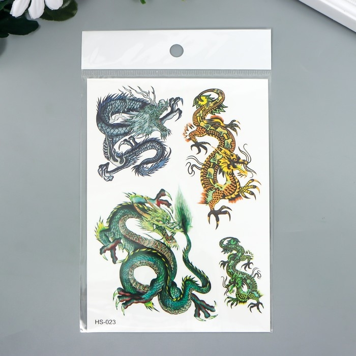 Татуировка на тело цветная с блёстками "Драконы" 14,8х10,5 см