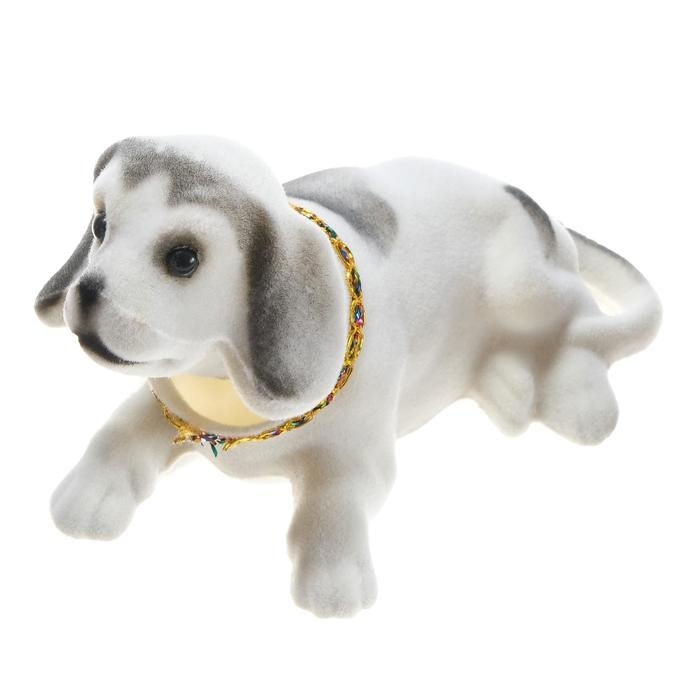 Игрушка на панель авто, собака на подушке, серый окрас