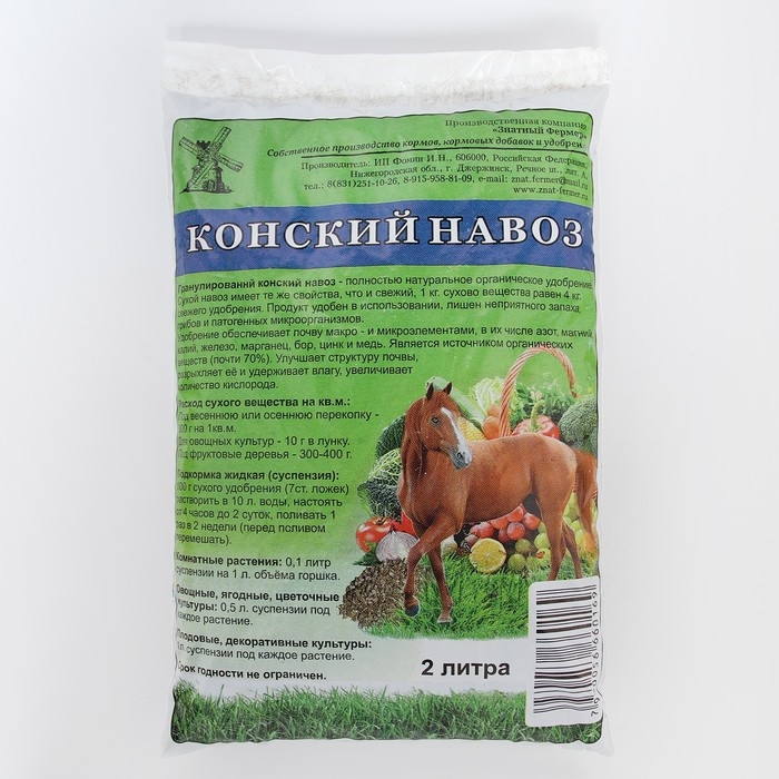 Удобрение Конский навоз, гранулированный, 2 л