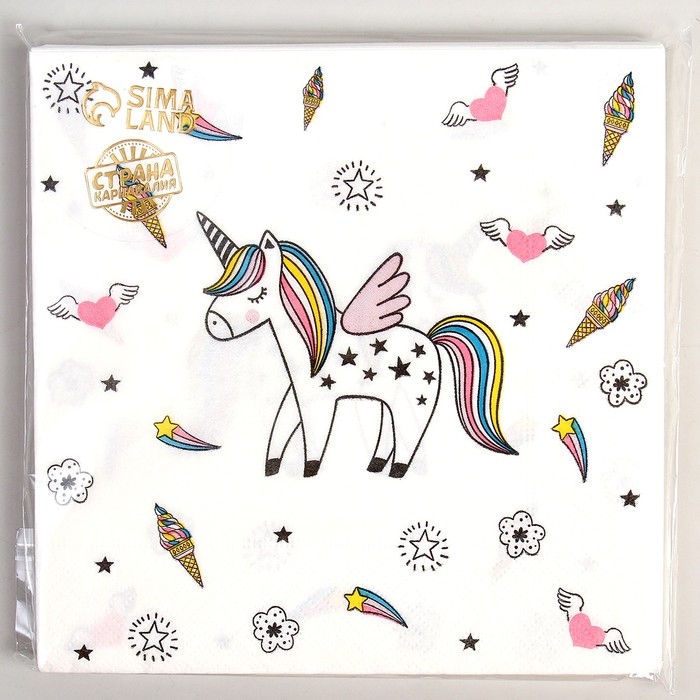 Салфетки бумажные «Единорог», 33х33 см, набор 20 шт., цвет белый