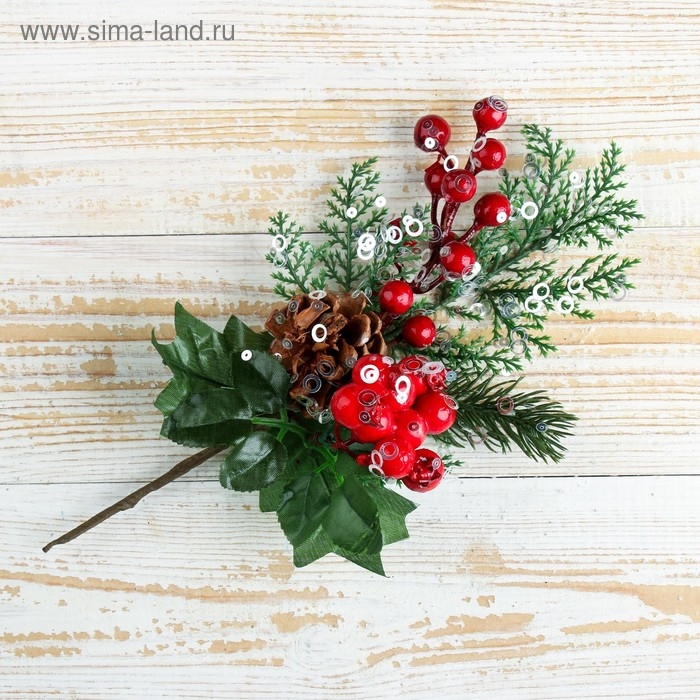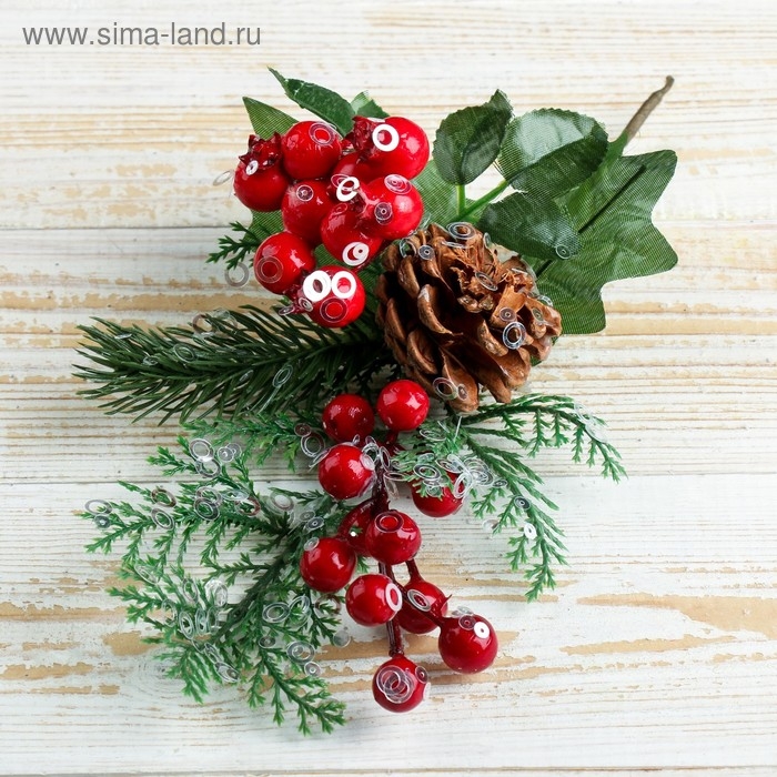 Декор "Зимняя магия" шишка листья хвоя ягоды 25 см