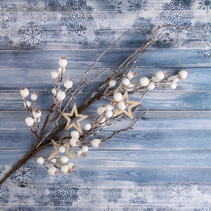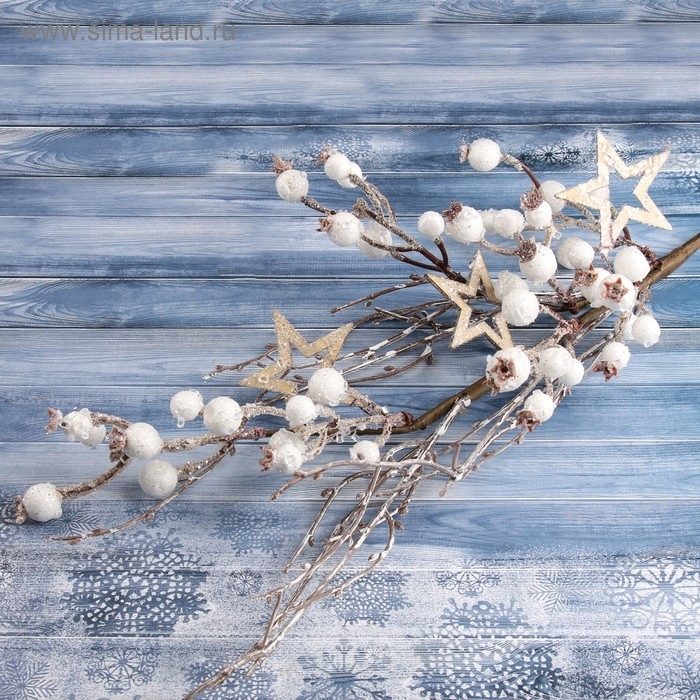 Декор "Зимняя магия" ветка с ягодами и звёздами, 63 см