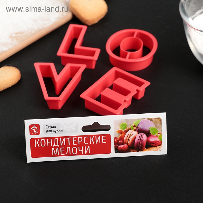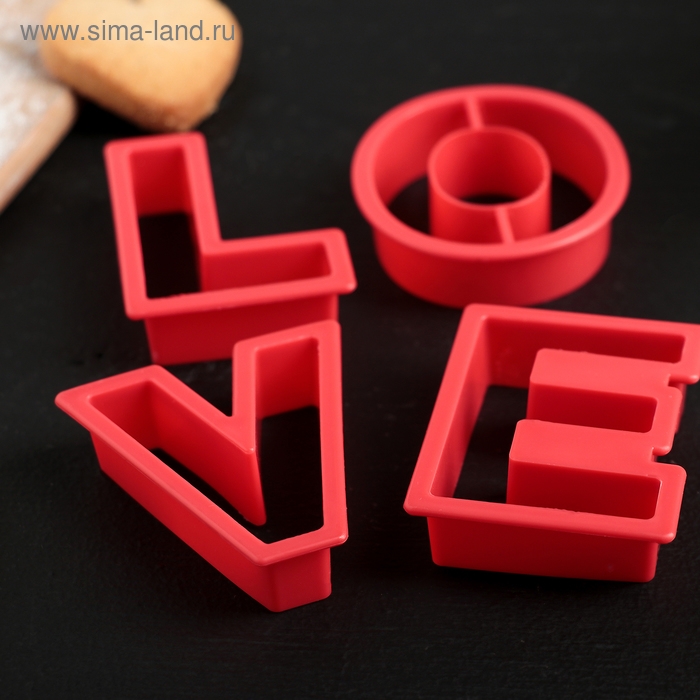 Набор форм для печенья Доляна «Любовь», 4 шт, 6×5,5×1,5 см, цвет красный