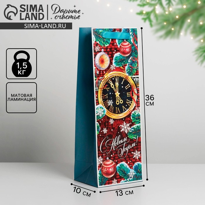 Пакет под бутылку крафтовый «Чудес в новогоднюю ночь», 13 х 36 х 10 см, Новый год