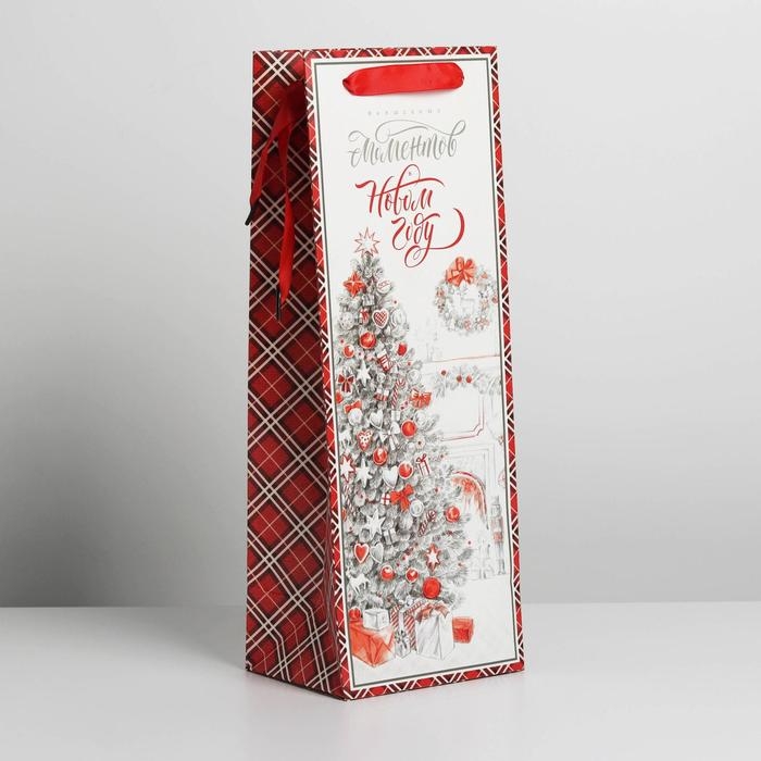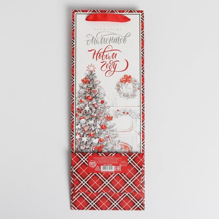 Пакет под бутылку крафтовый «Волшебных моментов», 13 х 36 х 10 см, Новый год