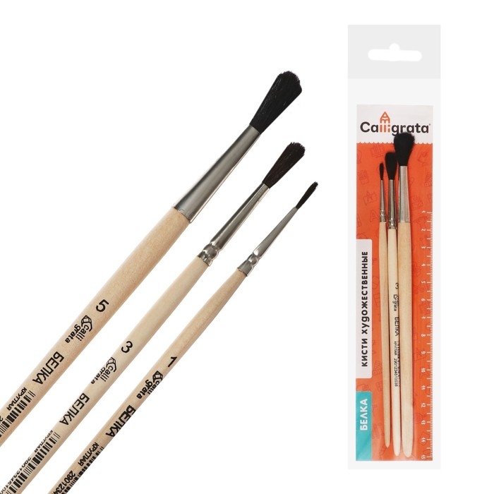 Набор кистей Белка 3 штуки, Calligrata №1 (круглые №: 1, 3, 5), деревянная ручка