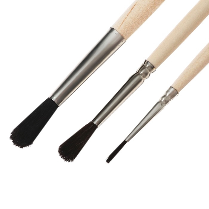 Набор кистей Микс 3 штуки, Calligrata №5 (круглые: Белка № 3, Коза № 4; плоская Щетина № 6), деревянная ручка