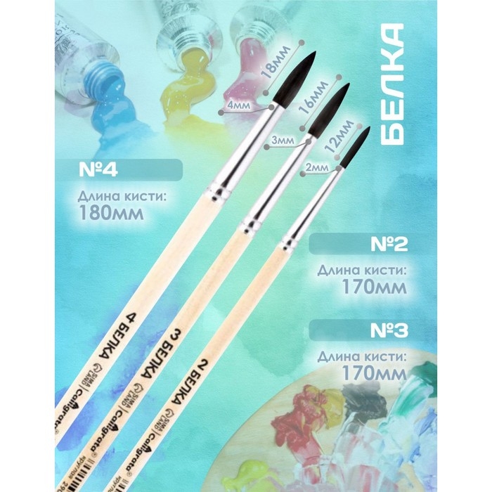 Набор кистей Белка 3 штуки, Calligrata №2 (круглые №: 2, 3, 4), деревянная ручка