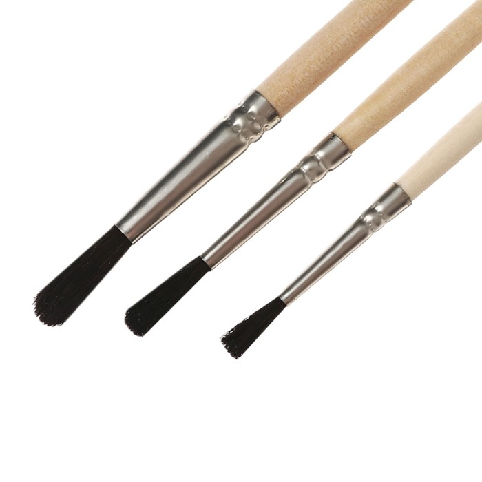 Набор кистей Микс 3 штуки, Calligrata №5 (круглые: Белка № 3, Коза № 4; плоская Щетина № 6), деревянная ручка