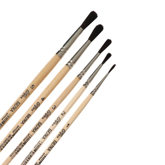 Набор кистей Белка 5 штук, Calligrata №4 (круглые №: 1, 2, 3, 4, 5), деревянная ручка