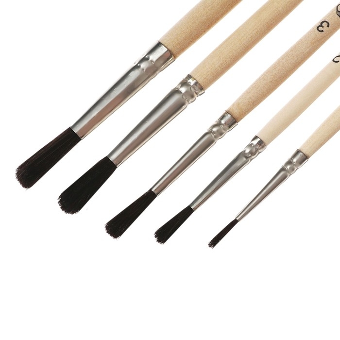 Набор кистей нейлон, круглые, средней жёсткости, 6 штук : №2, 4, 6, 8, 10, 12, с деревянными ручками, в блистере
