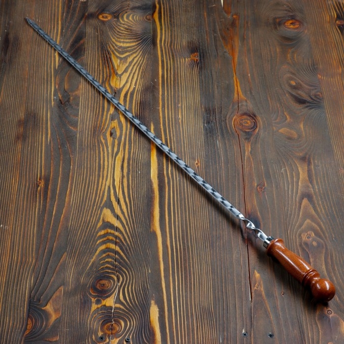 Шампур с деревянной ручкой, рабочая длина - 70 см, ширина - 10 мм, толщина - 3 мм с узором