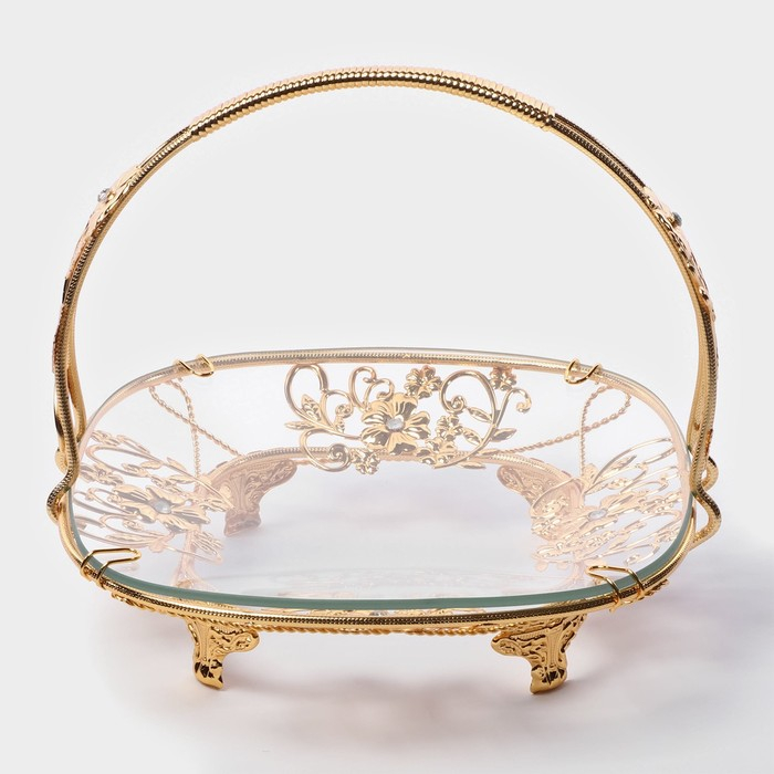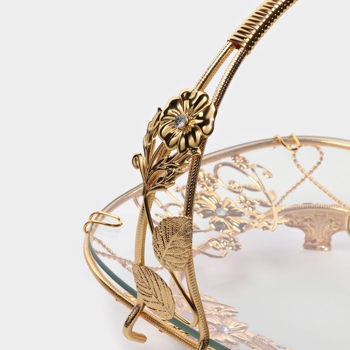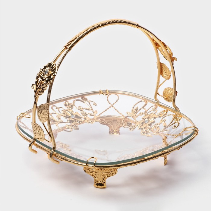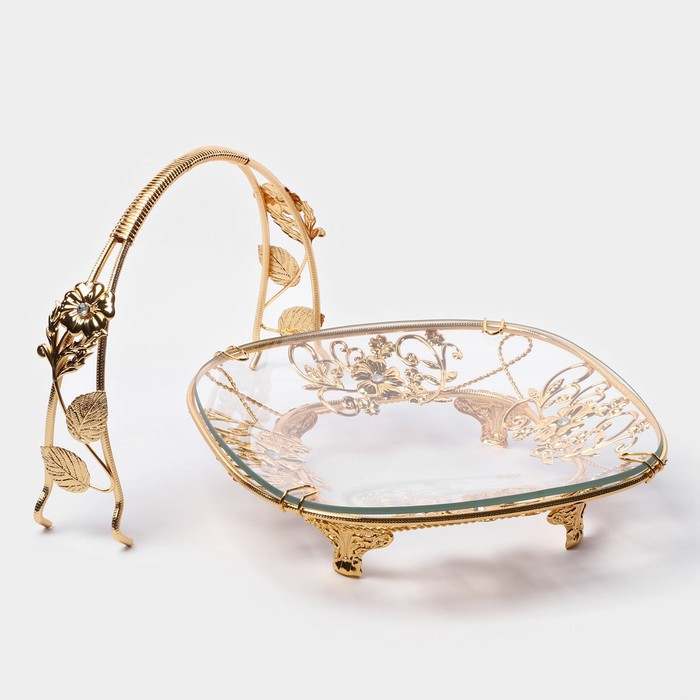Фруктовница металлическая «Хайгарден», 21,5×21,5×20,5 см, съёмная ручка, цвет металла золотой