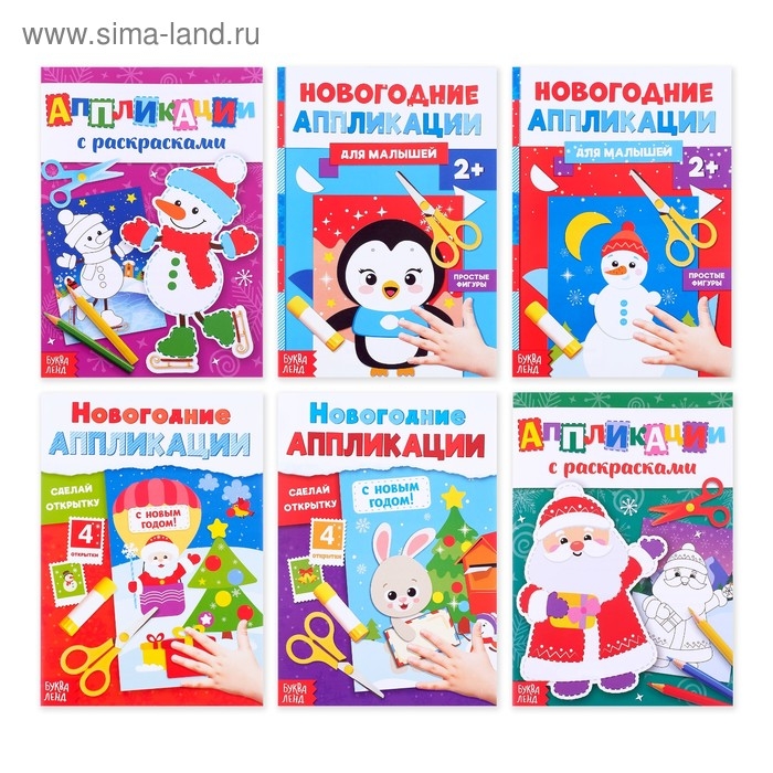 Набор аппликаций «Новогодняя мастерская» — это 6 книжек с раскрасками и заданиями, которые создадут праздничное настроение и помогут сделать поздравительные открытки.