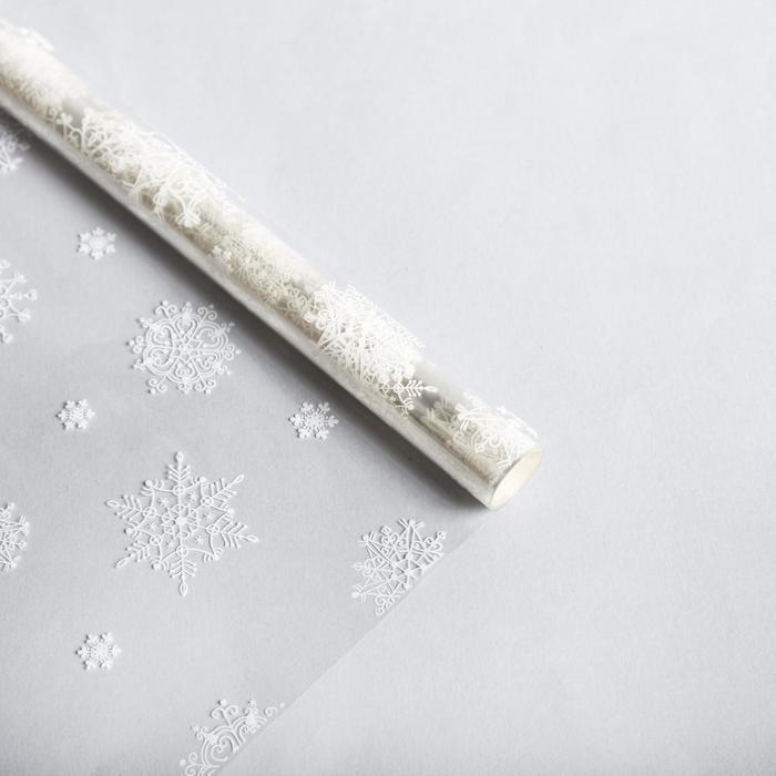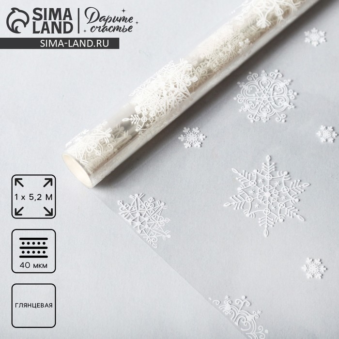 Плёнка упаковочная на Новый год глянцевая «Снежинки», белая, 1 х 5.2 м