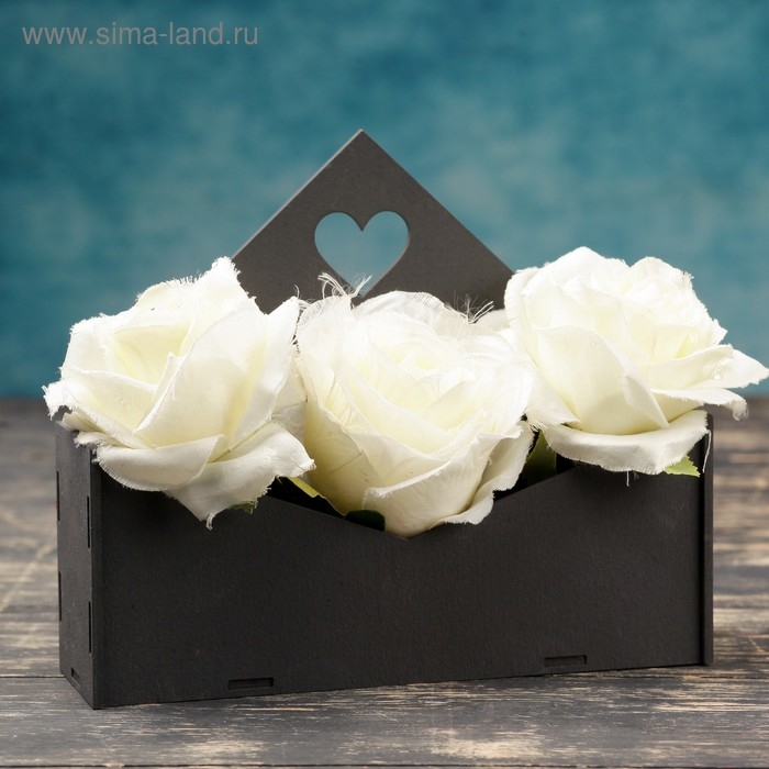 Кашпо деревянное 21×6×18 см Конверт "Доброе Сердце", чёрный Дарим Красиво