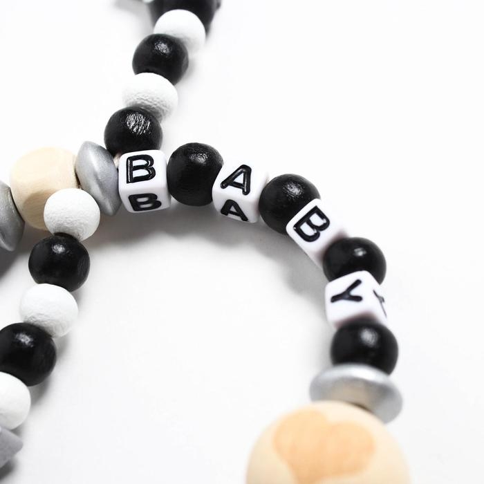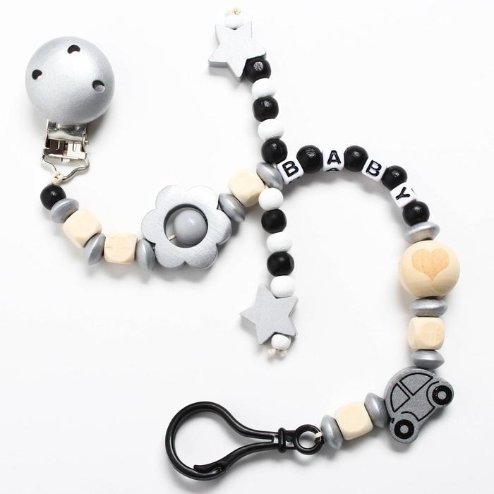 Изделие фиксируется на одежде ребёнка. На конце цепочки есть карабин, который зацепляется за кольцо пустышки. Надёжное крепление убережёт вещь от падения на пол, если малютка случайно выронит её изо рта.