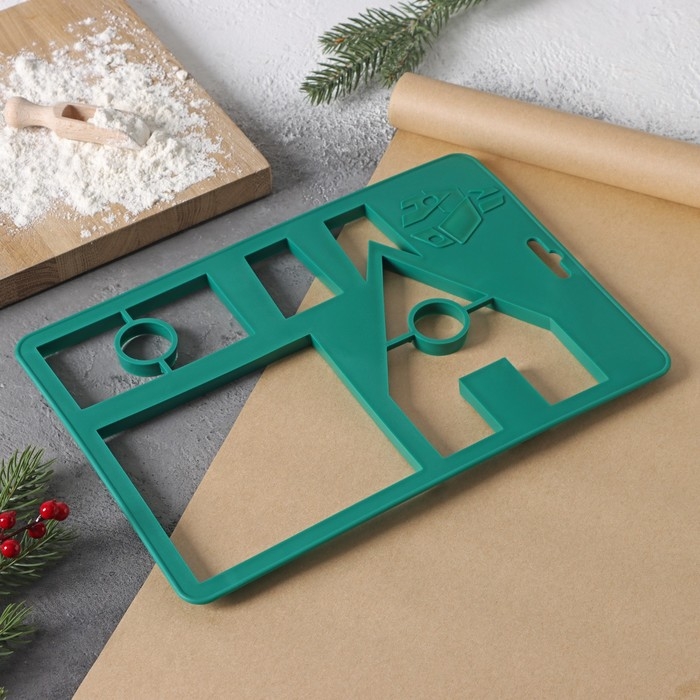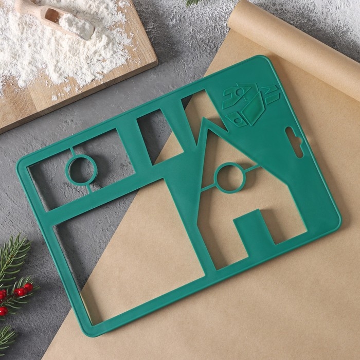 Форма для вырезания печенья новогодняя Доляна «Пряничный домик», 28×19 см, цвет зелёный