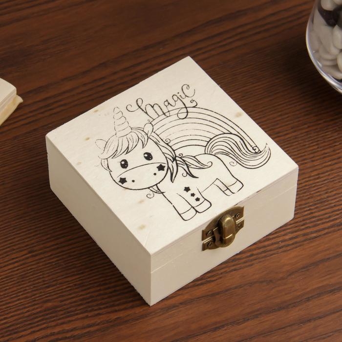 Шкатулка дерево под роспись "Единорожка и радуга" 5х10х10 см