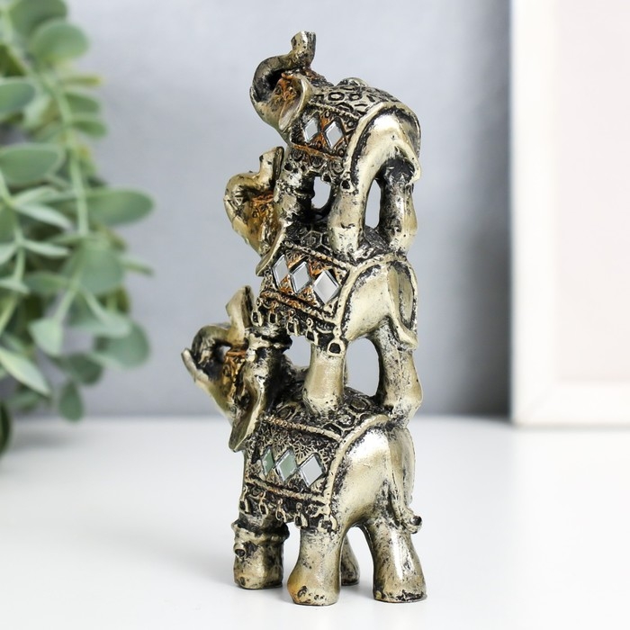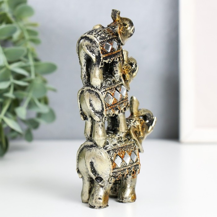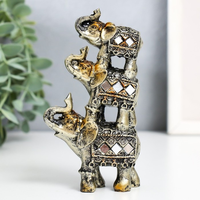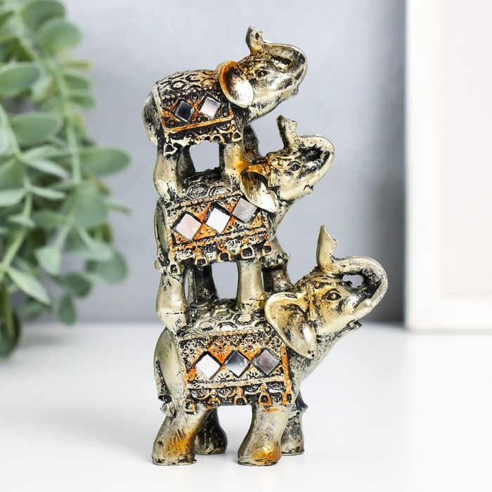 Сувенир полистоун "Три слоника-пирамида попона с мозаикой" 12х7х3 см