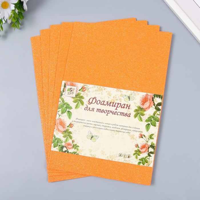 Фоамиран "Неоновый блеск - оранж" 2 мм формат А4 (набор 5 листов)