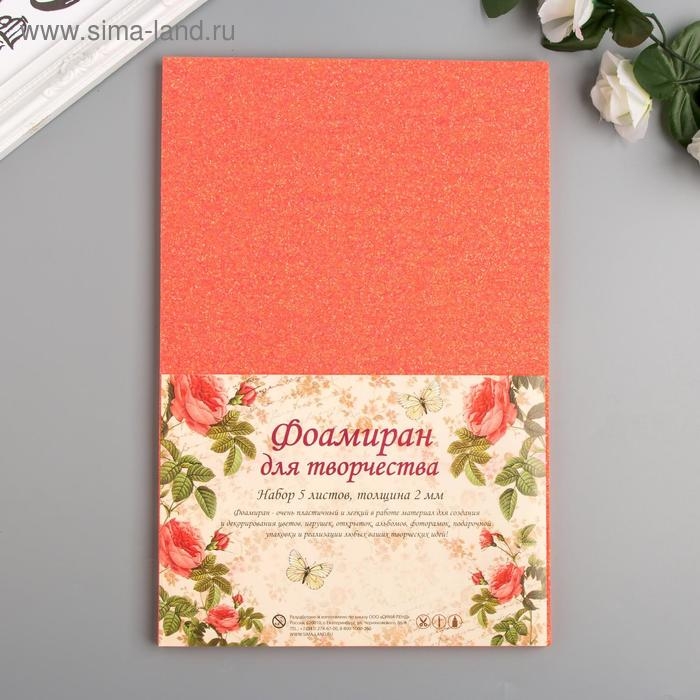 Фоамиран "Неоновый блеск - яркий оранж" 2 мм формат А4 (набор 5 листов)
