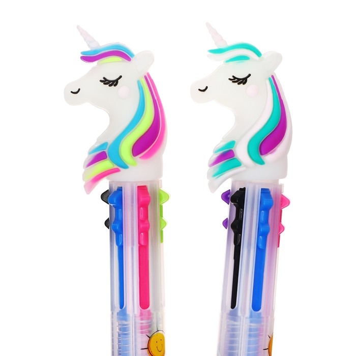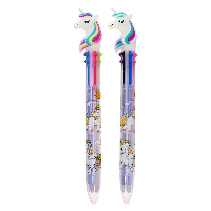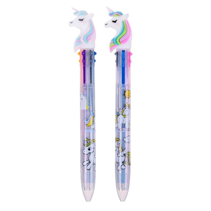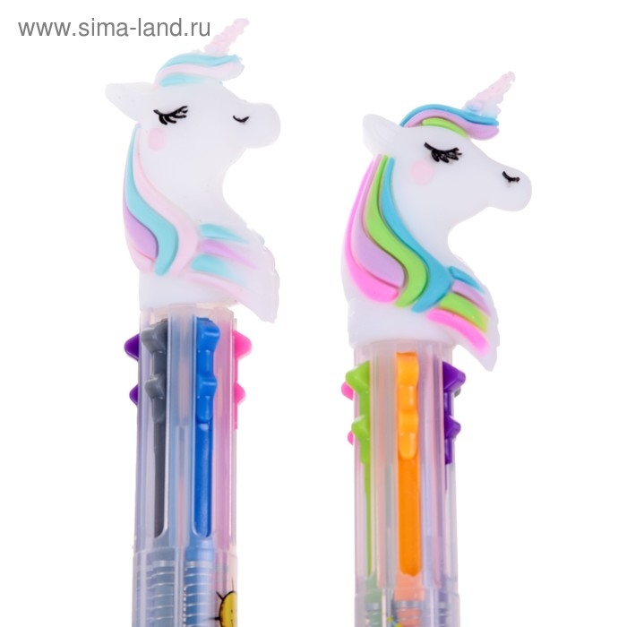 Ручка шариковая, автоматическая "Единорог", 6-х цветная (штрихкод на штуке)