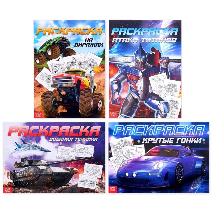Раскраски набор «Для мальчиков», 4 шт. по 16 стр., формат А4