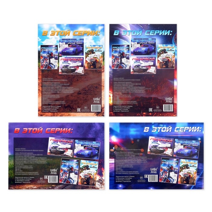 Набор раскрасок «Для мальчиков» объединил в себе всё, что так нравится мальчикам. Книжки познакомят малыша с различными видами транспорта, он разрисует городские внедорожники, военную технику, трансформеров и даже монстр-траки.